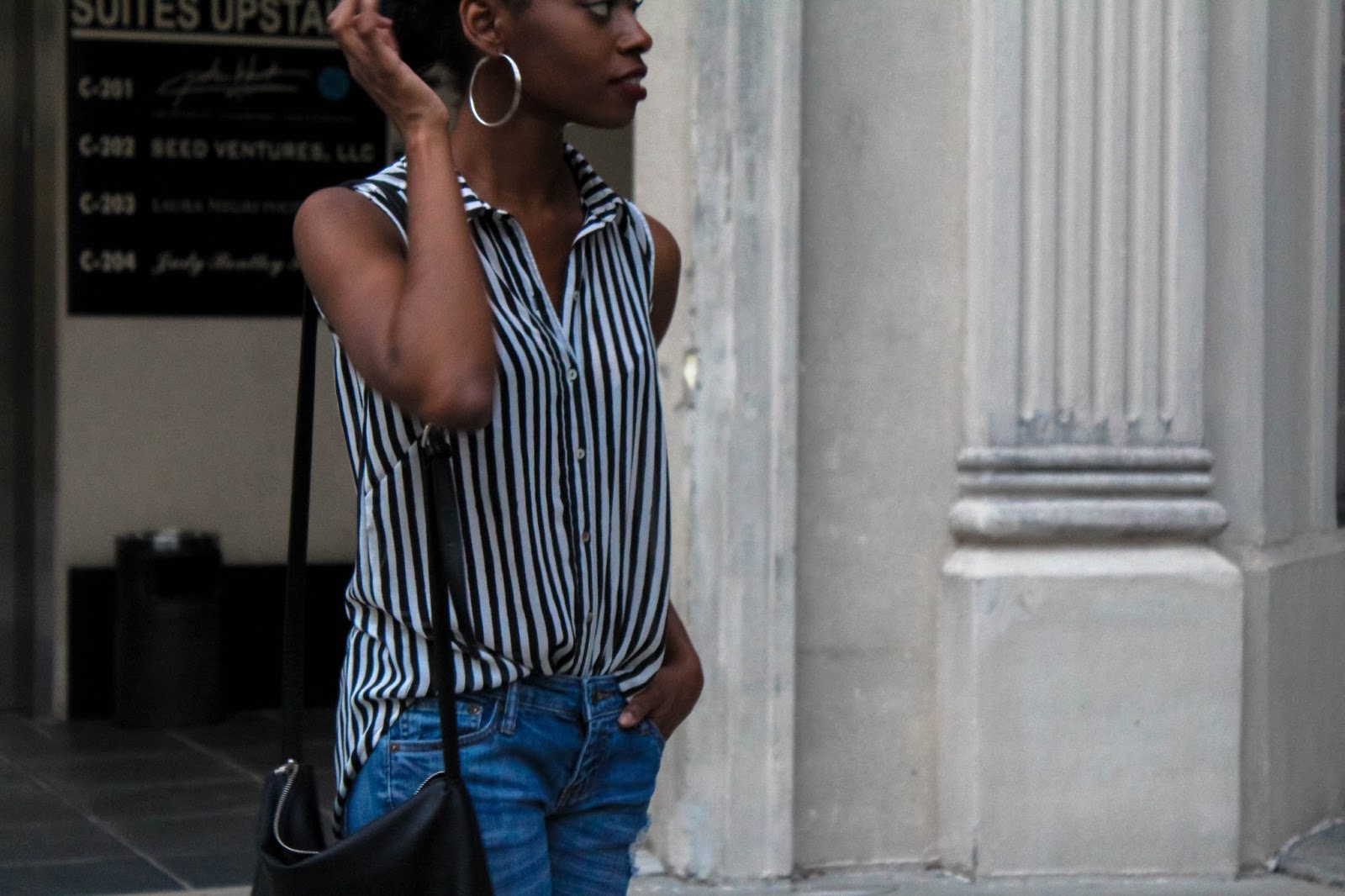 Hi friends!! I hope to find you all in great health. I've been working really hard on my YouTube channel, so hopefully, I'll have my first video up sometime this month!! I'm so excited!! Speaking of excitement, I've clearly been digging wearing stripes as of late, and I feel great about it (lol). Such a comfy and relaxed look with boyfriend jeans and this flowy top from H&M. I paired it with some pumps just to spice it up a bit, and the slouchy crossbody, which actually came inside of a tote, adds a little flavor, too.